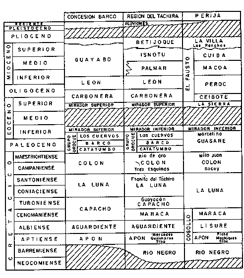 Estratigrafía: Las capas más antiguas penetradas por los pozos corresponden a la Formación La Quinta, del Jurásico.