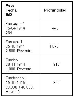 La perforación de los primeros pozos utilizaba cabrias de madera construídas en el sitio y taladros de percusión. Se presentaron graves problemas para dominar la presión del yacimiento, y los reventones eran frecuentes al llegar a los horizontes petrolíferos. Para 1915 la Caribbean registraba cuatro pozos perforados: