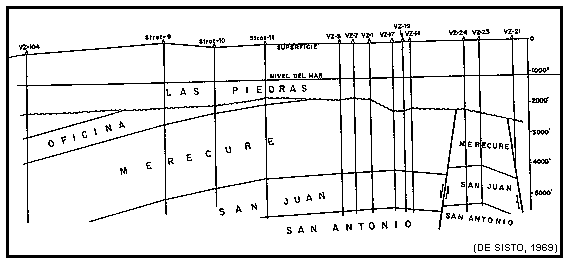 El pozo VZX-1 del campo La Vieja encontró areniscas duras, cuarcíticas, esencialmente no marinas con argilitas macizas ocasionalmente carbonáceas, y lutitas con abundantes restos de plantas, de parte alta de la Formación Barranquín (base del Grupo Sucre, cretácico). Siguen, transicional y concordante, 1000' de areniscas calcáreas, lutitas, limolitas, lizas y dolomitas de las formaciones El Cantil y Chimana que completan el Grupo Sucre son equivalentes de la Formación Canoa.