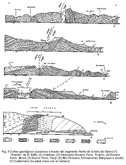 Cabalgamiento múltiple del Eoceno sobre el Mio-Plioceno, en la falla de Valera (Fig. 9-E).