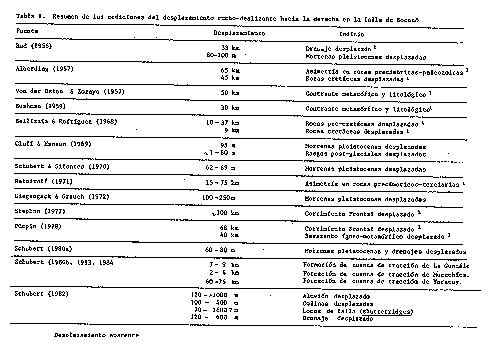 hacia la derecha y vertical o normal, durante el Cenozoico Tardío. WEINGARTEN (1977) describió un paleosuelo (oxisol) a elevaciones de 1200 a 2200 m sobre el nivel del río Chama, en la cuenca de La González (al sur de Mérida), al cual interpretó como levantado muy por encima de la elevación a la cual se formó (aunque MALAGON, 1982, aporta datos sobre la génesis de suelos en los páramos que en parte invalidan esta interpretación). Finalmente, SCHUBERT (1980b, 1983, 1984) postuló la existencia de cuencas de tracción (pull-apart basins), tales como las cuencas de La González, Mucuchíes y Yaracuy, a lo largo de la zona de falla de Boconó, rellenadas con sedimentos cuaternarios, las cuales se caracterizan por desplazamientos normales grandes; estas cuencas están separadas por zonas de falla angostas y con desplazamiento principalmente rumbo-deslizante hacia la derecha.