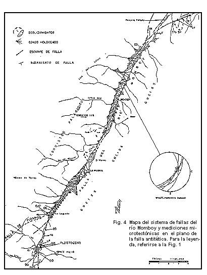 Prolongación del sistema de Valera al Sur del graben del río Momboy, fallando una terraza cuaternaria (Fig. 12), Zona de "lateral spreading" de Timotes.
