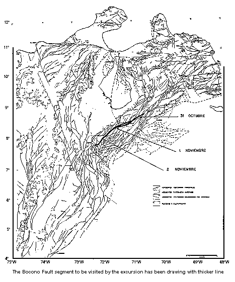 This excursion has the propose of showing to its participants specific neotectonic.characteristics of the Boconó Fault in the segment between Santo Domingo (Merida State) and San Cristobal (Tachira State). (Fig. Generalized tectonic synthesis).