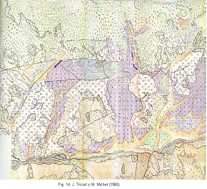 Tricart, J. y M. Michel, 1965. Monographie et carte Géomorphologique de la région de Lagunillas-Andes Vénézuéliennes. Rev. Geomorpho. Dyno, XV année, (1,2,3): 1-33, Paris.