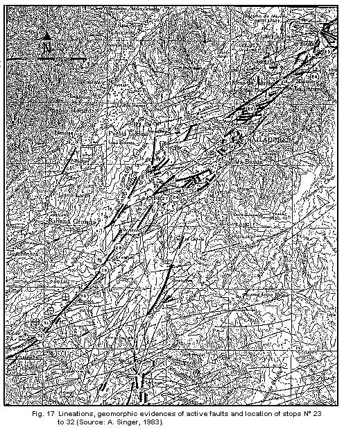 c) Evidences of active faulting in the section Tovar - La Grita (Fig. 17).