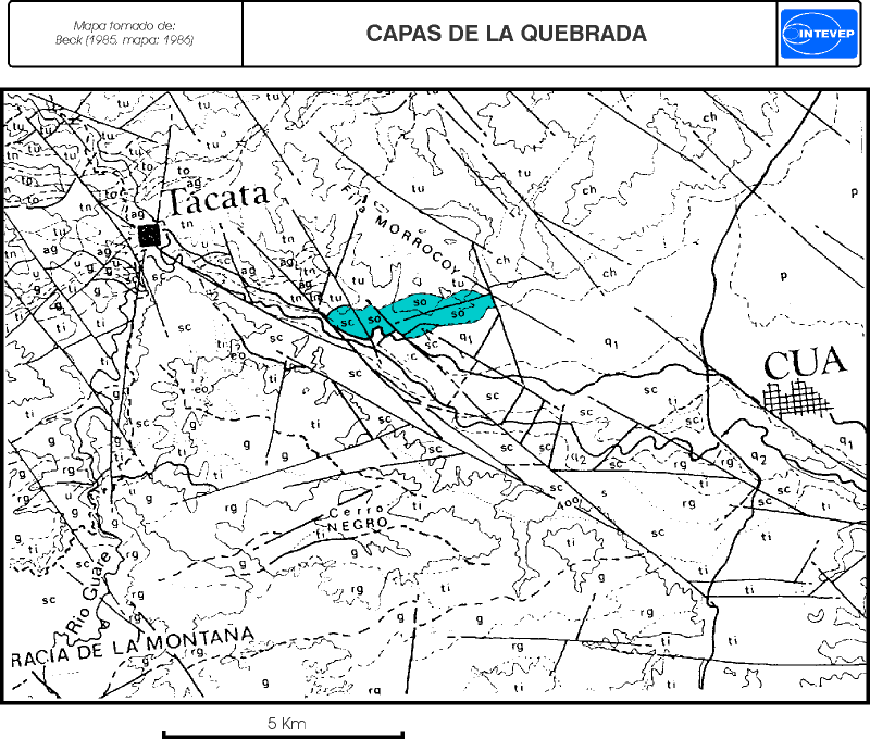Consideraciones históricas: Estas rocas fueron descritas por Beck (1985, p. 174; 1986) para referirse a una serie de rocas carbonáticas y conglomerados, ubicados en la quebrada homónima al oeste de Cúa, estado Miranda, ubicándola en su "Napa de Caucagua - El Tinaco".