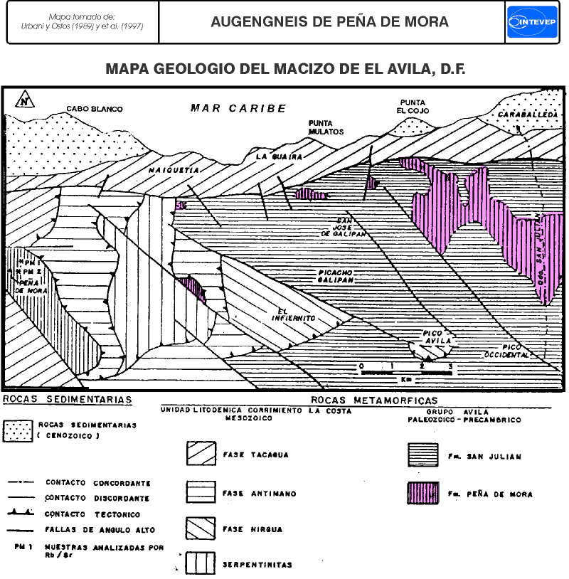 Urbani, F. y M. Ostos, 1989. El Complejo Avila, Cordillera de La Costa, Venezuela. Geos, UCV, Caracas, (29): 205-217.