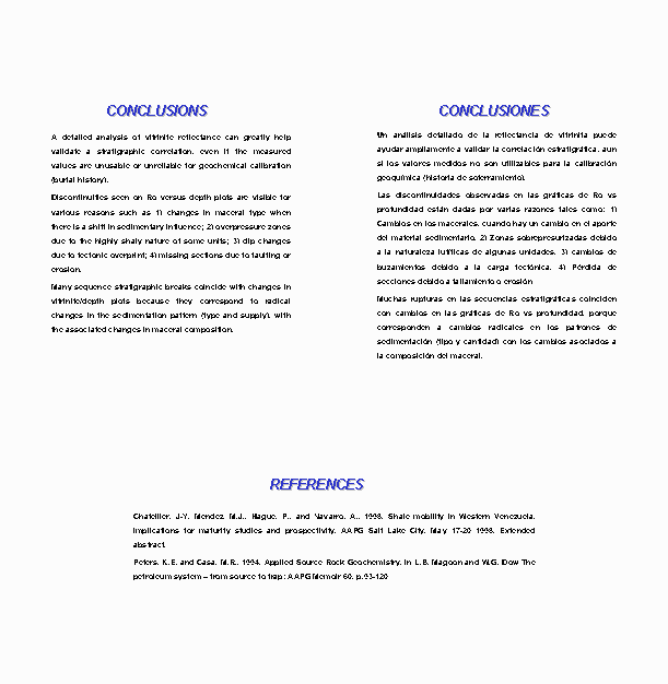 A linear scale for Ro (vitrinite reflectance) was used because it improves identification of discontinuities and thus, it provides a better integration tool and a better correlation with stratigraphic and tectonic discontinuities. These discontinuities are visible but less obvious on a logarithmic scale.