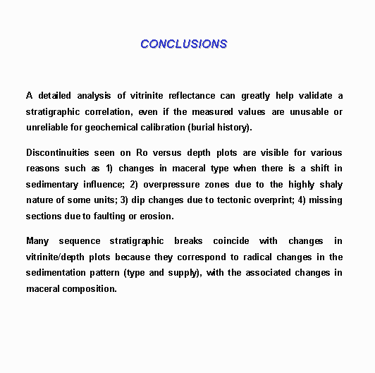 Many sequence stratigraphic breaks coincide with changes in vitrinite/depth plots because they correspond to radical changes in the sedimentation pattern (type and supply), with the associated changes in maceral composition.