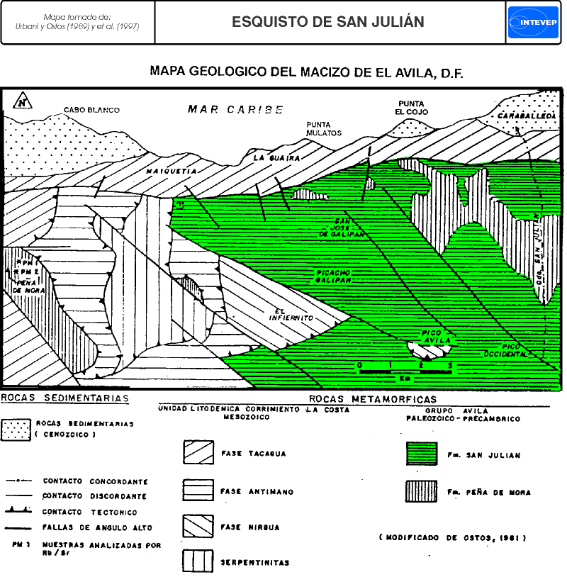Ilustraciones: Mapa geológico del Macizo de El Avila, D.F..