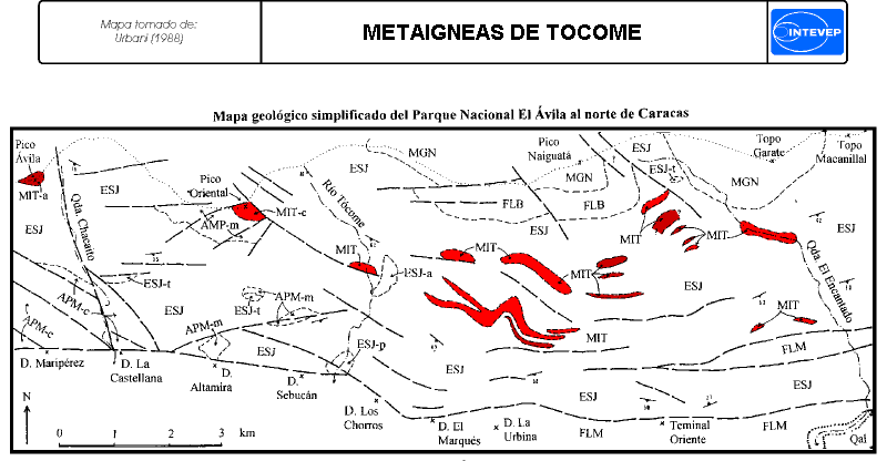 Baena, J., 1997. Geología de la cuenca del río Tacamahaco, Parque Nacional El Avila. UCV, Escuela de Geología, Trabajo especial de grado.