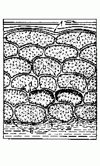 ![]() | Lavas de almohadaLas siguientes características indican el tope del flujo en lavas de almohada: a) La superficie superior de la almohada va de moderada a ligeramente convexa y es relativamente lisa. b) Las bases de las almohadas presentan generalmente protuberancias que apuntan hacia abajo entre los espacios dejados por almohadas infrayacentes. c) Las almohadas son generalmente más vesiculares cerca del tope. d) Las diaclasas columnares en pequeña escala pueden estar más o menos desarrolladas alrededor del borde superior. Estas diaclasas están ausentes ó pobremente desarrolladas en la base de las almohadas. e) Las almohadas extrusivas sobre sedimentos no consolidados tienen la tendencia a corrugar los sedimentos infrayacentes y pueden por efectos de temperatura alterar estos sedimentos corrugados. f) El tope de un flujo de lava de almohada no muestra generalmente ningún efecto de calor sobre los sedimentos suprayacentes. La auperficie almohada del flujo es gradualmente nivelada por los sedimentos suprayacentes, los cuales tienen la tendencia de llenar las áreas deprimidas más rápidamente. |