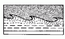 | Canales de erosiónLos canales que se forman por erosión de una capa y relleno subsecuente cortan en la misma produciendo truncamiento de los estratos infrayacentes. El lado cóncavo del canal apunta generalmente hacia arriba. Los bordes de las capas truncadas por la erosión (discordancia) están dirigidos hacia el tope original. |