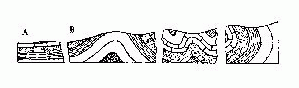 ![]() | Trazado de capas o reconocimiento de una secuencia normal conocidaEl tope y la base de las capas verticales o de buzamiento muy alto pueden determinarse siguiendo la traza de la capa hasta llegar a la secuencia normal conocida (A) o correlacionando con ella en el área donde estos estratos estan ligeramente plegados (B) o sin ninguna deformación (A). |